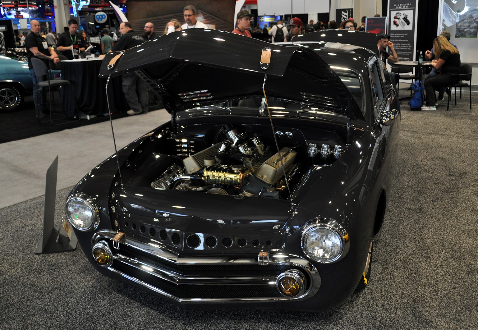 the rims are Halibrand from a 1930s Novi Indycar, the body has been wedge sectioned by five inches up front and two and a half inches in the rear